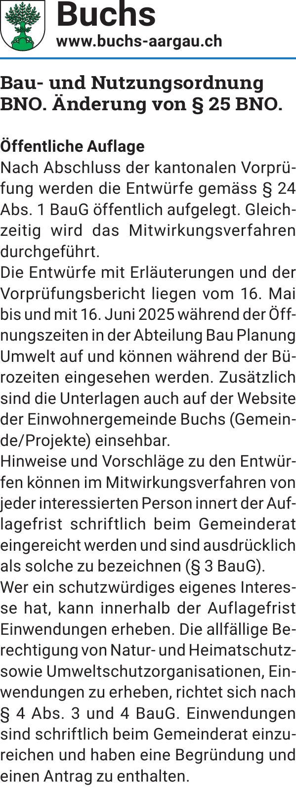 Sie sind hier: Home > Amtliche Mitteilungen > Bau- und Nutzungsordnung BNO. Änderung von § 25 BNO.
