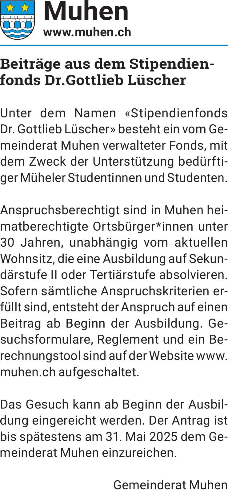 Beiträge aus dem Stipendienfonds Dr. Gottlieb Lüscher