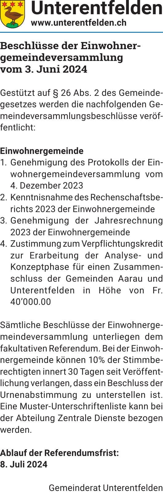 Beschlüsse der Einwohnergemeindeversammlung vom 3. Juni 2024