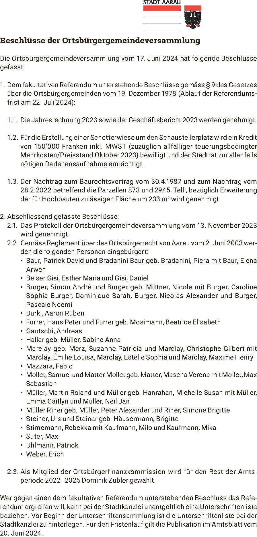 Beschlüsse der Ortsbürgergemeindeversammlung