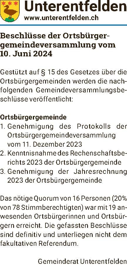 Beschlüsse der Ortsbürgergemeindeversammlung vom 10. Juni 202