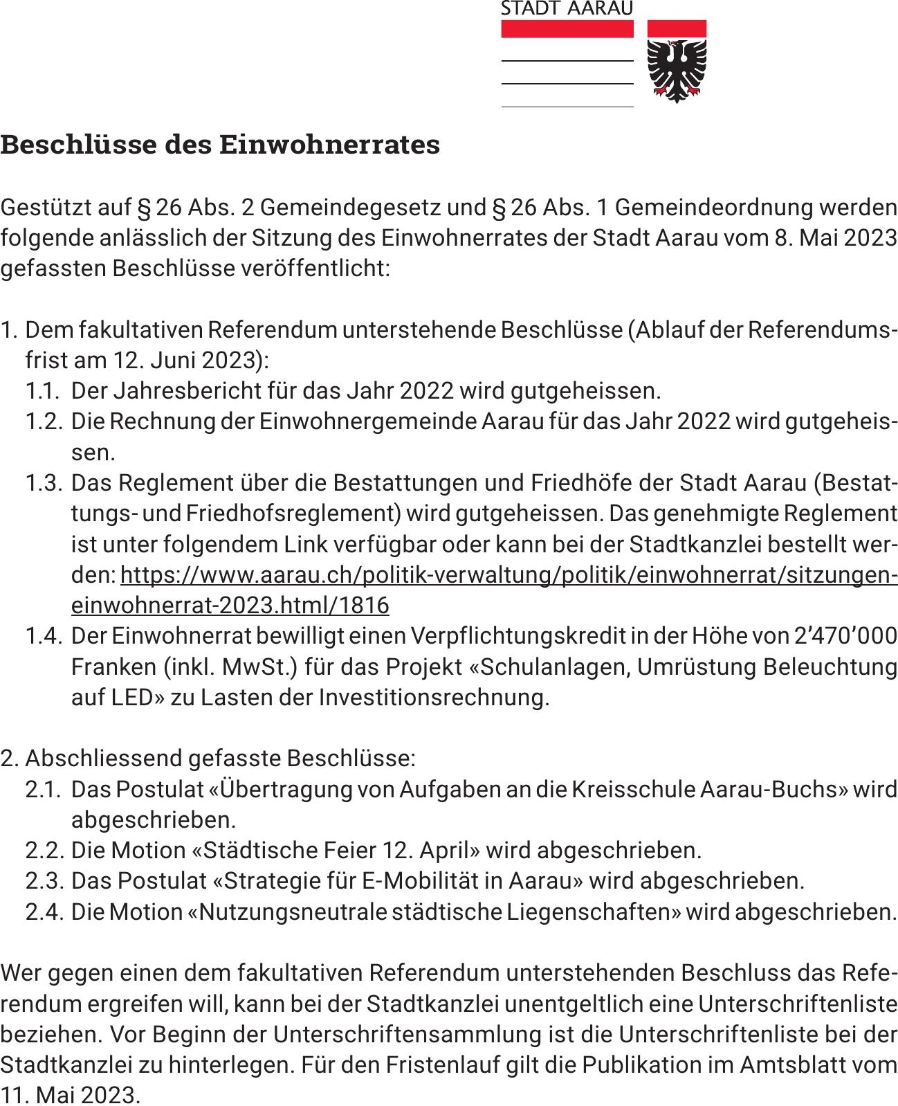 Sie sind hier: Home > Amtliche Mitteilungen > Beschlüsse des Einwohnerrates
