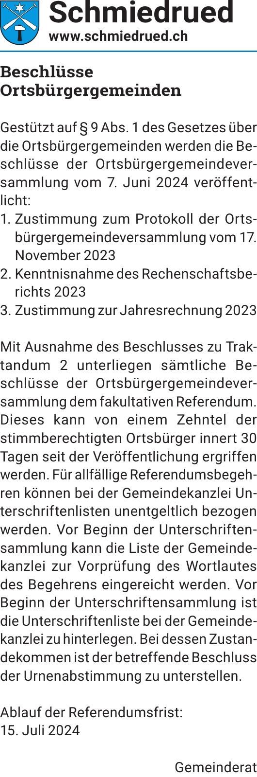 Beschlüsse Ortsbürgergemeinden