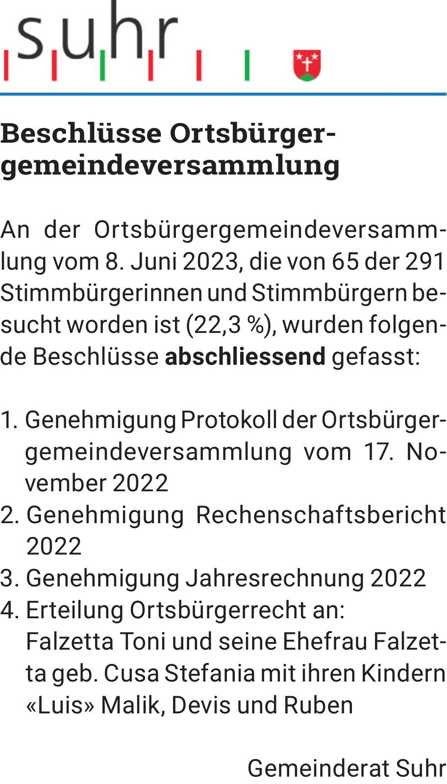 Beschlüsse Ortsbürgergemeindeversammlung