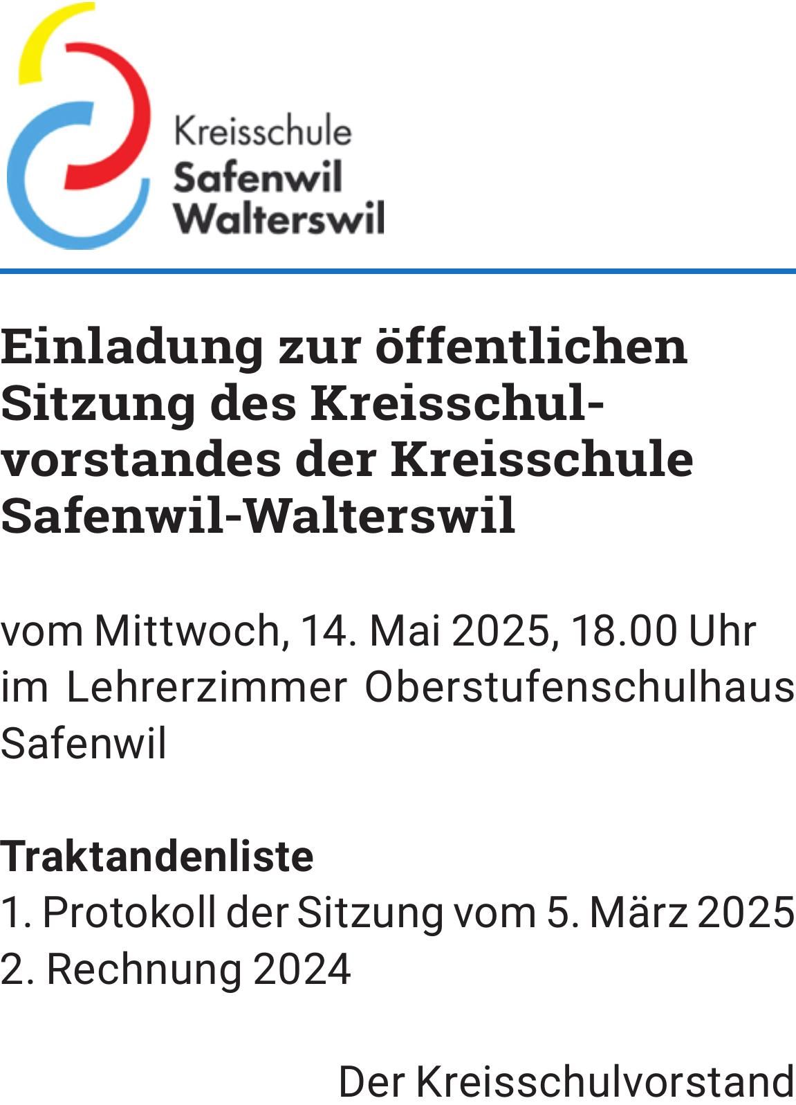 Einladung zur öffentlichen Sitzung des Kreisschulvorstandes der