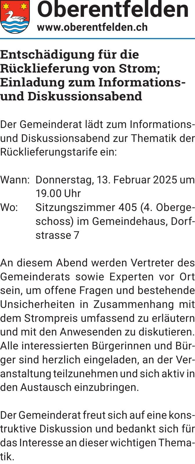 Entschädigung für die Rücklieferung von Strom Einladung zum