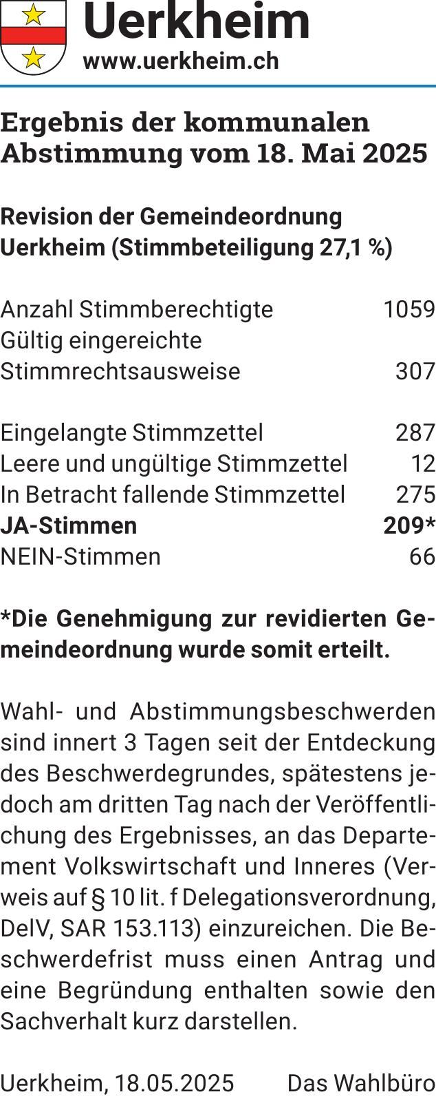 Ergebnis der kommunalen Abstimmung vom 18. Mai 2025