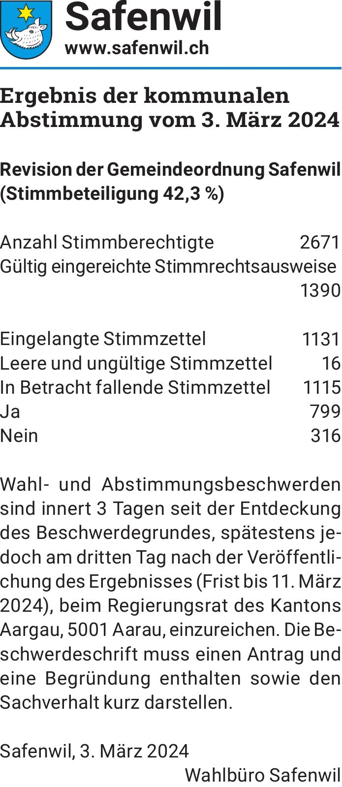 Ergebnis der kommunalen Abstimmung vom 3. März 2024