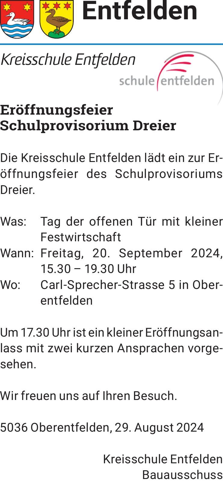 Sie sind hier: Home > Amtliche Mitteilungen > Eröffnungsfeier Schulprovisorium Dreier