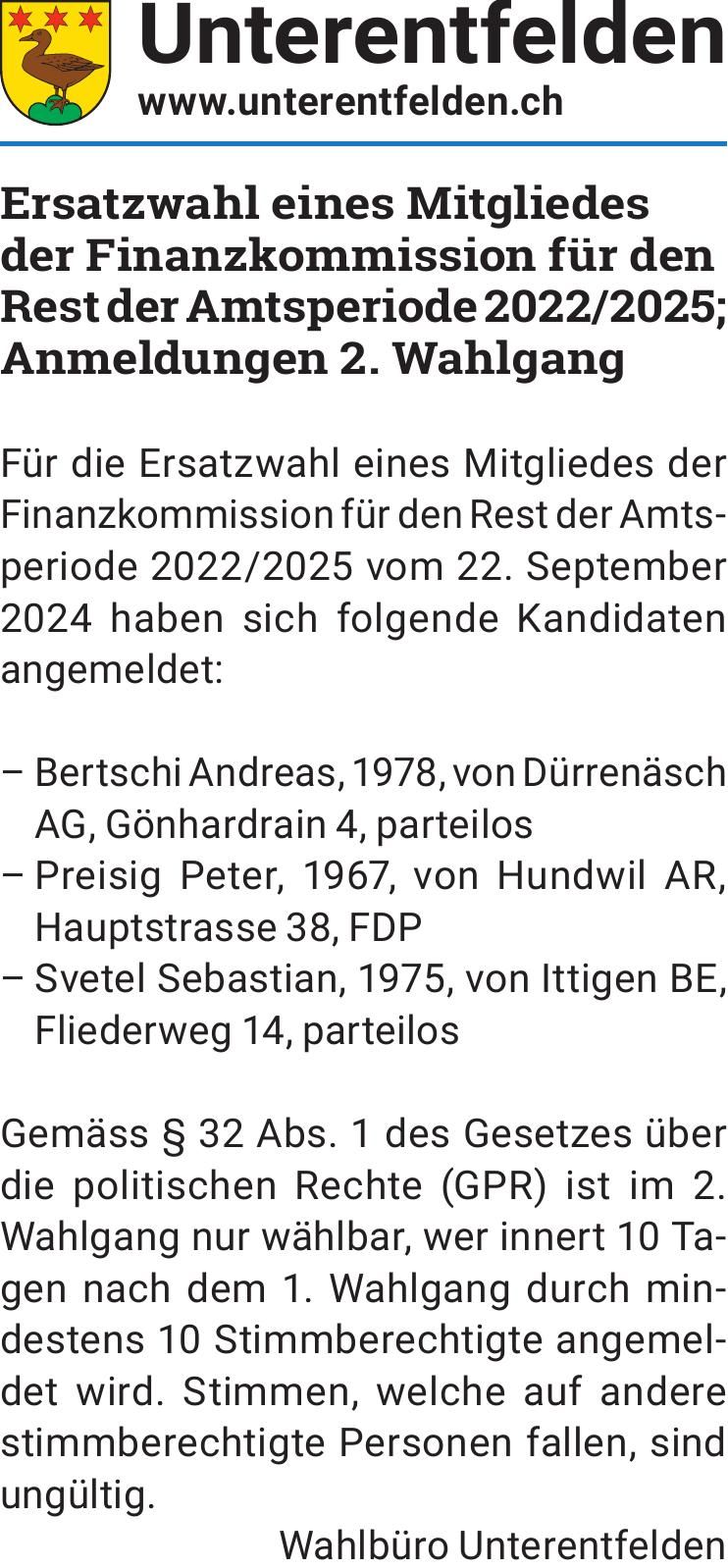 Sie sind hier: Home > Amtliche Mitteilungen > Ersatzwahl eines Mitgliedes der Finanzkommission für den Rest