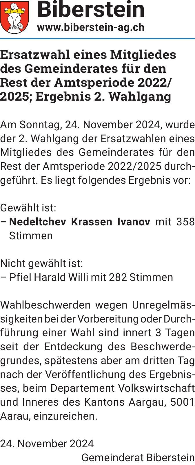 Sie sind hier: Home > Amtliche Mitteilungen > Ersatzwahl eines Mitgliedes des Gemeinderates für den Rest der