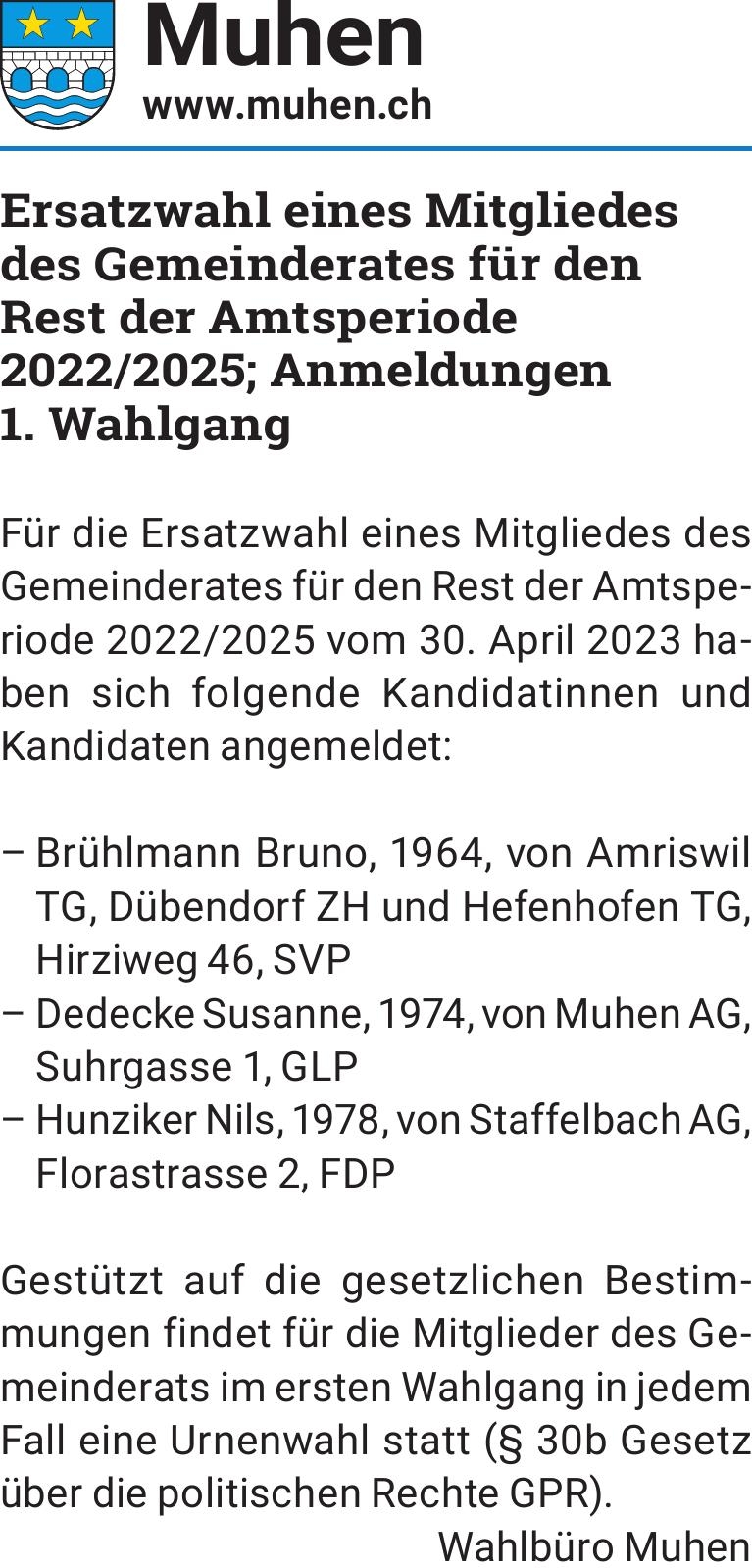Sie sind hier: Home > Amtliche Mitteilungen > Ersatzwahl eines Mitgliedes des Gemeinderates für den Rest der