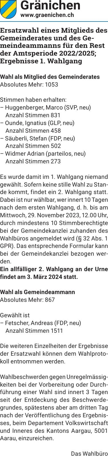 Sie sind hier: Home > Amtliche Mitteilungen > Ersatzwahl eines Mitglieds des Gemeinderates und des Gemeindeam