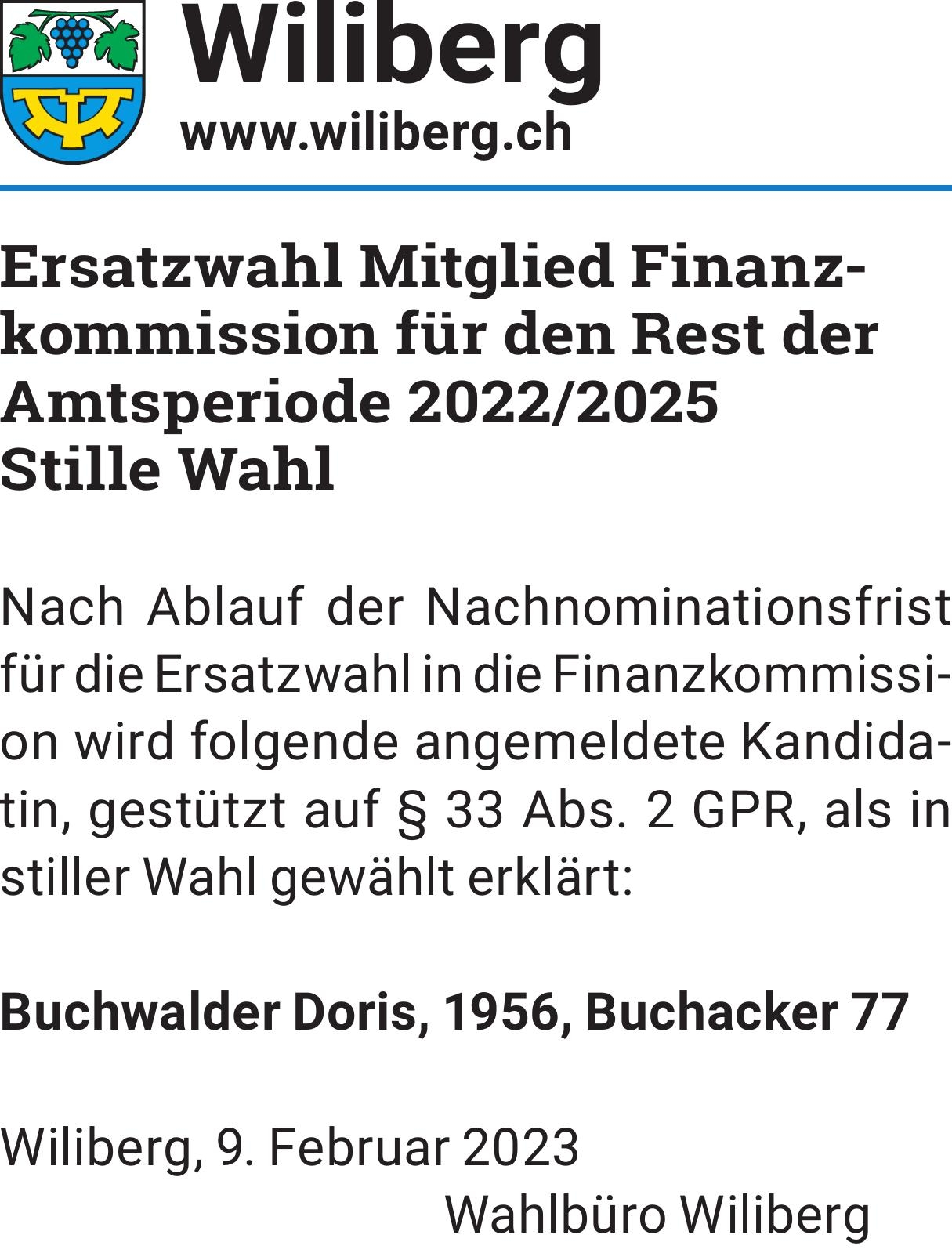 Ersatzwahl Mitglied Finanzkommission für den Rest der Amtsperi