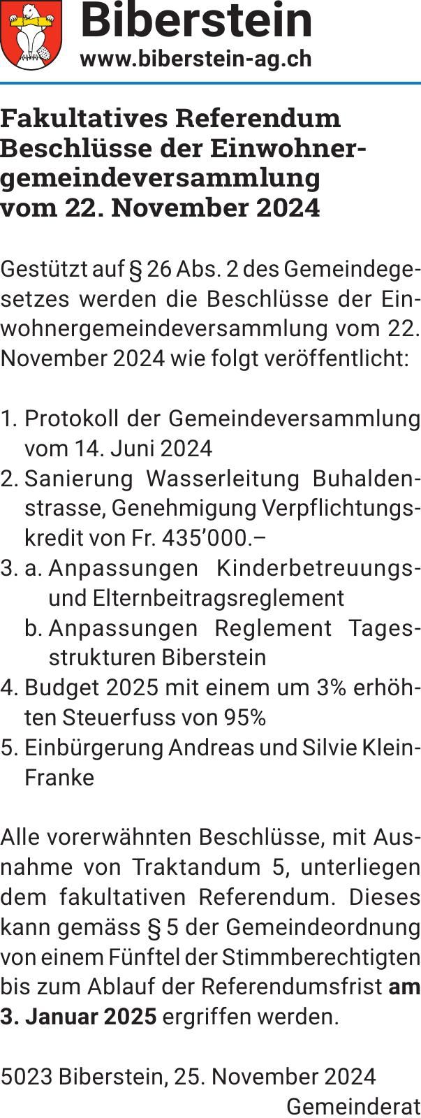Fakultatives Referendum Beschlüsse der Einwohnergemeindeversam