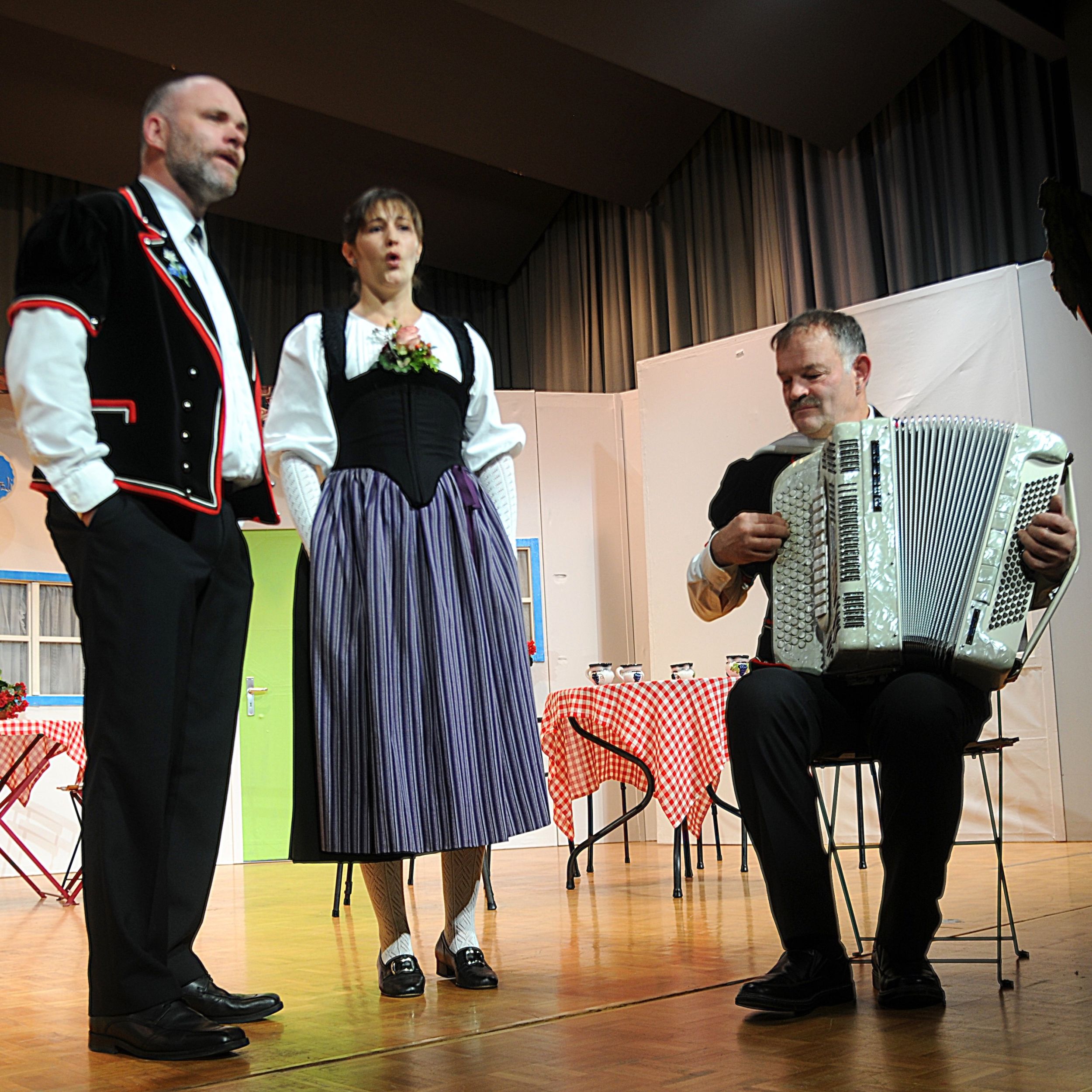 Dies ist so nachhaltig, dass Franco im zweiten Akt nach der Pause gleich selber im «Chutteli» beim Jodlerklub mitmacht und mit ihnen «I freu mi» von Paul Meier, «Fröi di Härz» von Ueli Zahnd und zum Schluss «Am Jodlertisch» von Fred Kaufmann intonierte und interpretierte. Oder anders ausgedrückt: Franco fand ein Hobby, Anschluss an die Gesellschaft, und zum Schluss wurde in der Gruppe diskutiert, wie man seine Mama günstig zu Besuch in die Schweiz holen könnte. Dazwischen brachte eine Kleinformation des Jodlerklubs das «Bodenseelied» von Ueli Moor und «Die gfitzte Manndli» von Ruedi Bieri dar. «Die Akteure», ergänzte Präsident Markus Zihlmann, «sind alles Freunde und Angehörige unserer Jodlerinnen und Jodler».