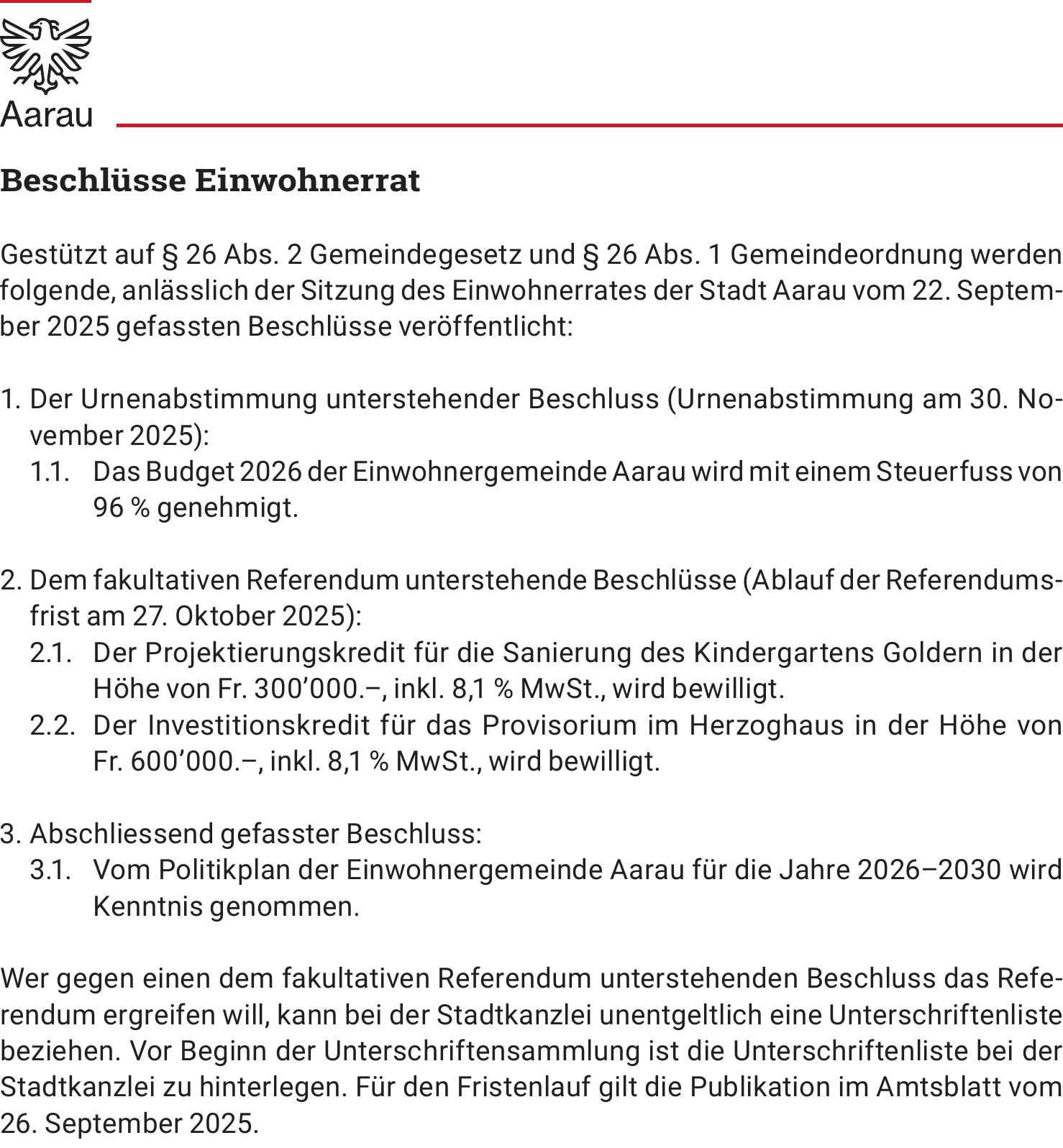 Beschlüsse des Einwohnerrats