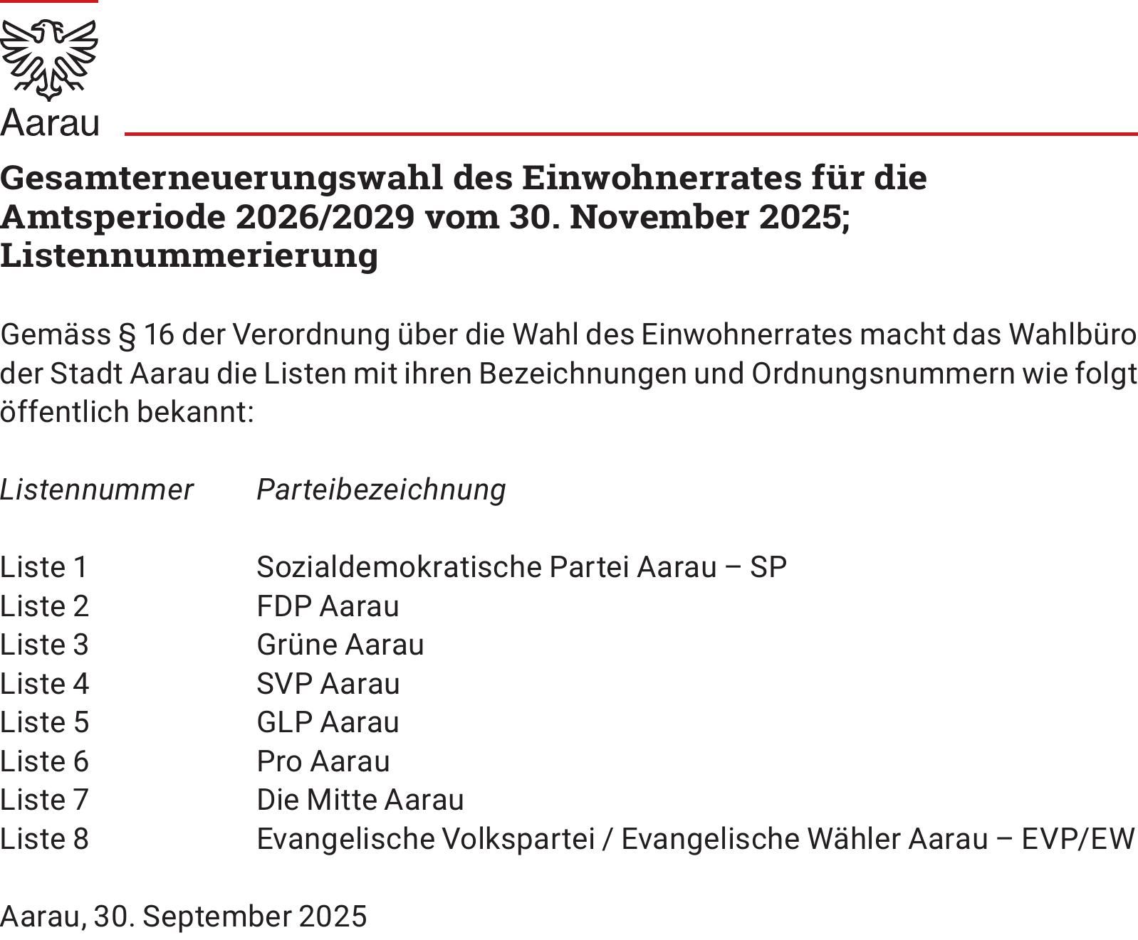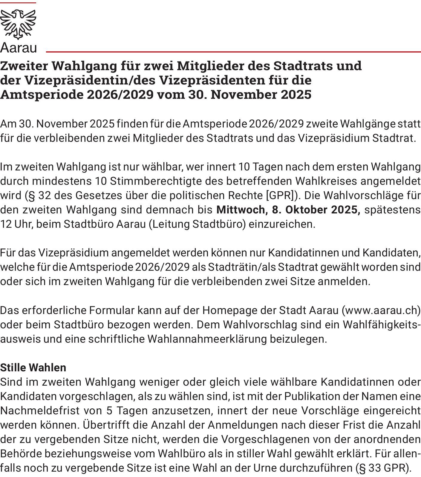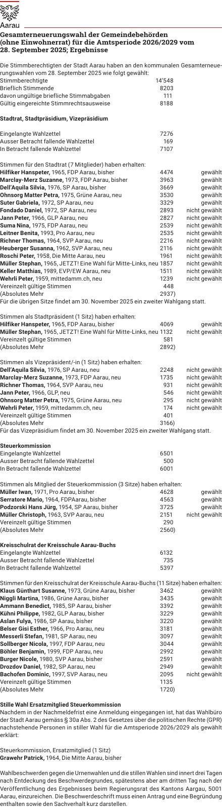 Gesamterneuerungswahlen Amtsperiode 2026 – 2029