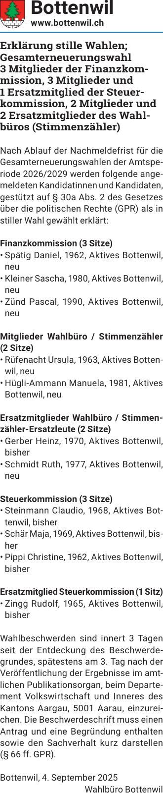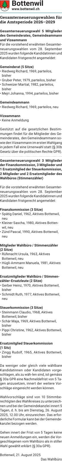 Gesamterneuerungswahlen Amtsperiode 2026 – 2029