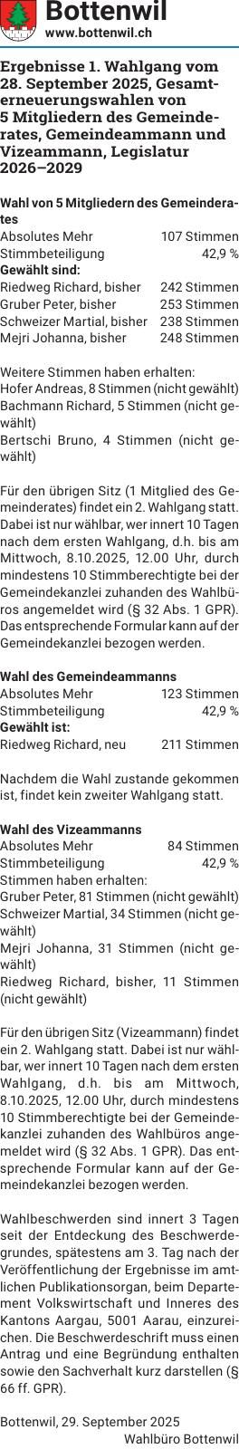 Gemeindewahlen für die Amtsperiode 2026–2029 2. Wahlgang