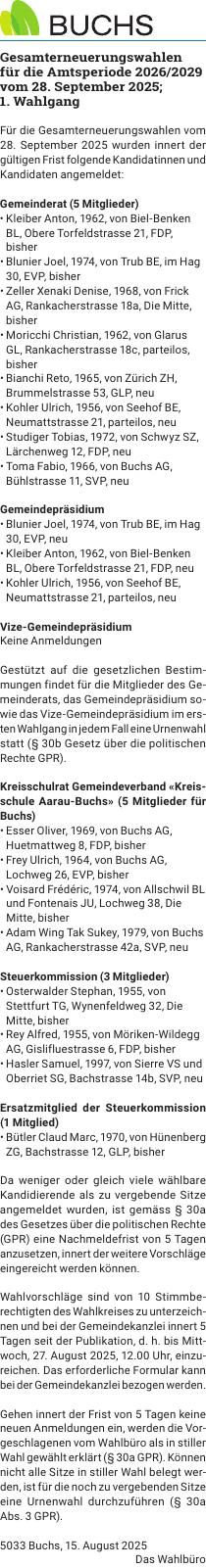 Gesamterneuerungswahlen Amtsperiode 2026 – 2029