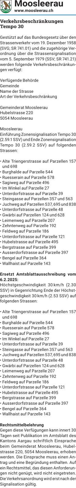 Fahrverbote und Verkehrsbeschränkung auf 30 km h Gebiet Bläie