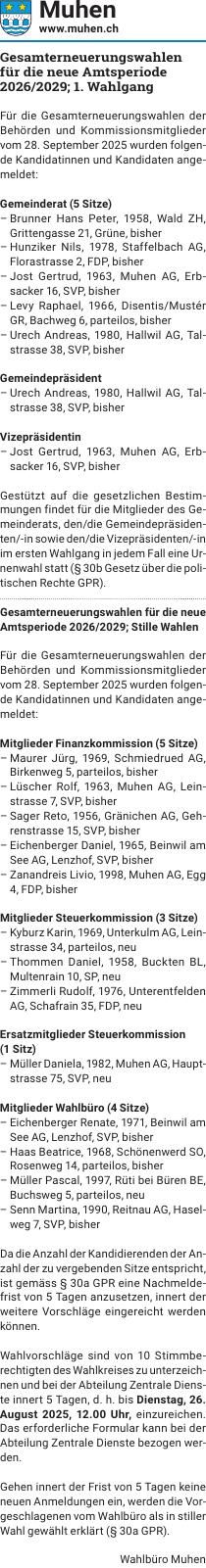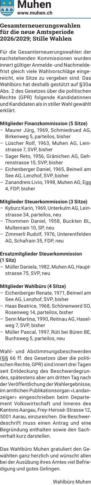 Gesamterneuerungswahlen Amtsperiode 2026 – 2029