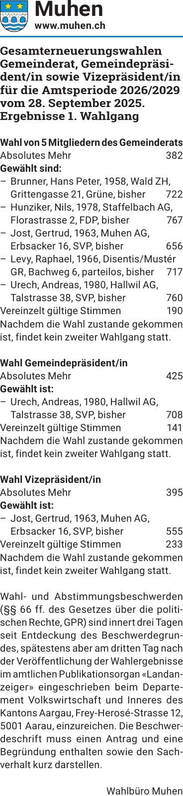 Gemeindewahlen für die Amtsperiode 2026–2029 2. Wahlgang