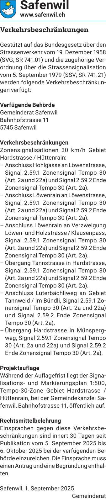 Fahrverbote und Verkehrsbeschränkung auf 30 km h Gebiet Bläie