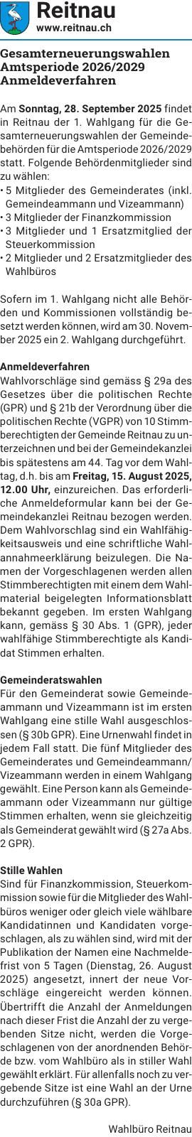 Gesamterneuerungswahlen Amtsperiode 2026 2029 Anmeldeverfahren