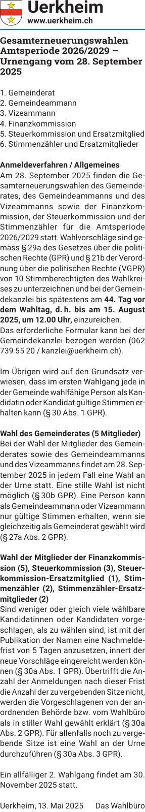 Gesamterneuerungswahlen Amtsperiode 2026 2029 – Urnengang vom 2