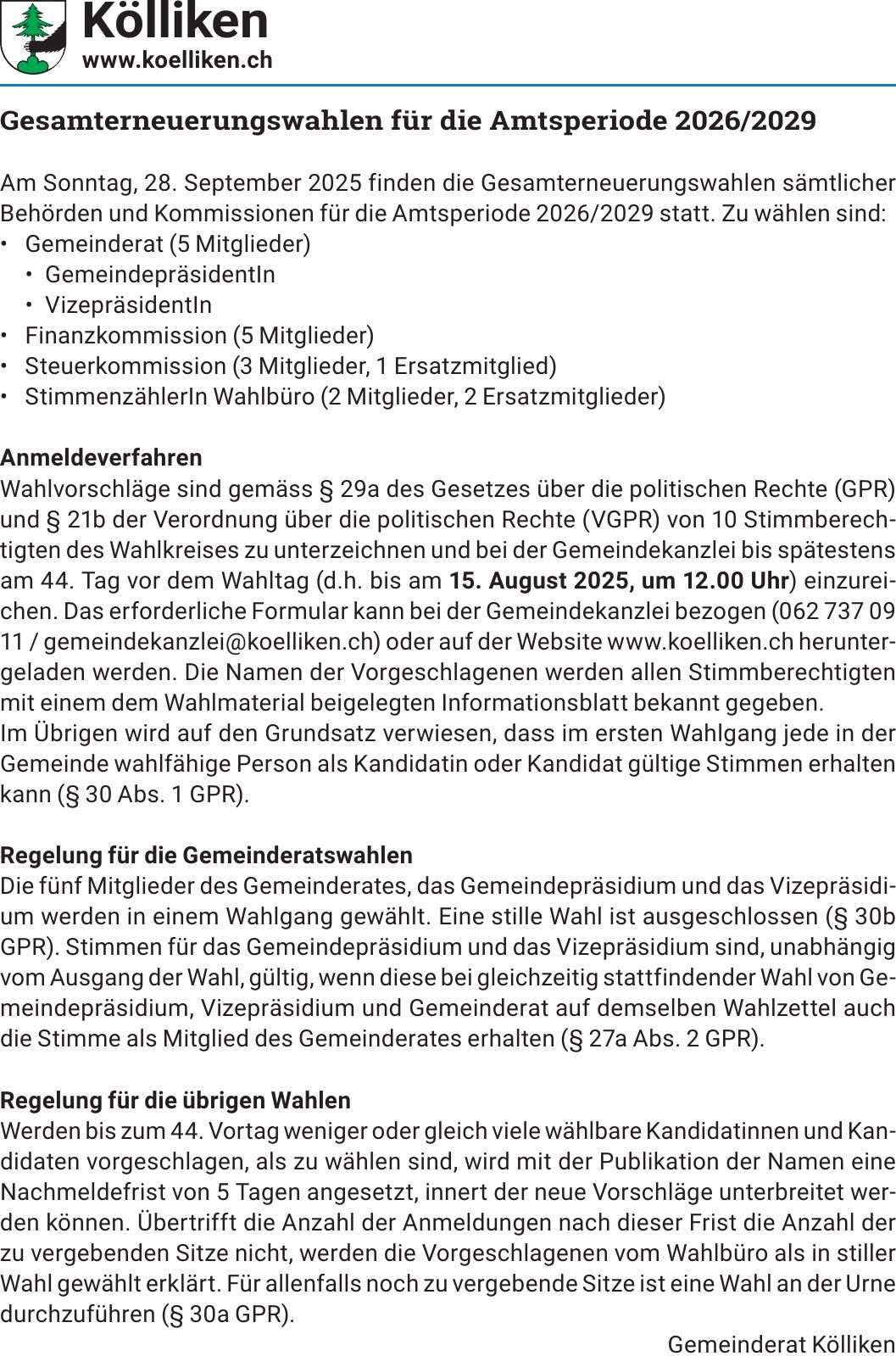 Gesamterneuerungswahlen für die Amtsperiode 2026 2029