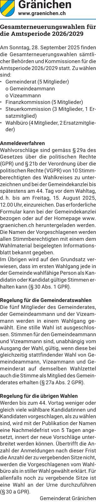 Gesamterneuerungswahlen für die Amtsperiode 2026 2029