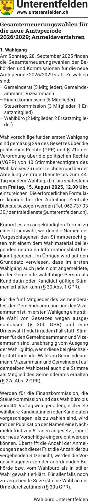 Gesamterneuerungswahlen für die neue Amtsperiode 2026 2029 An