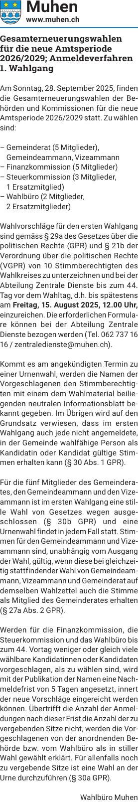 Gesamterneuerungswahlen für die neue Amtsperiode 2026 202_0001
