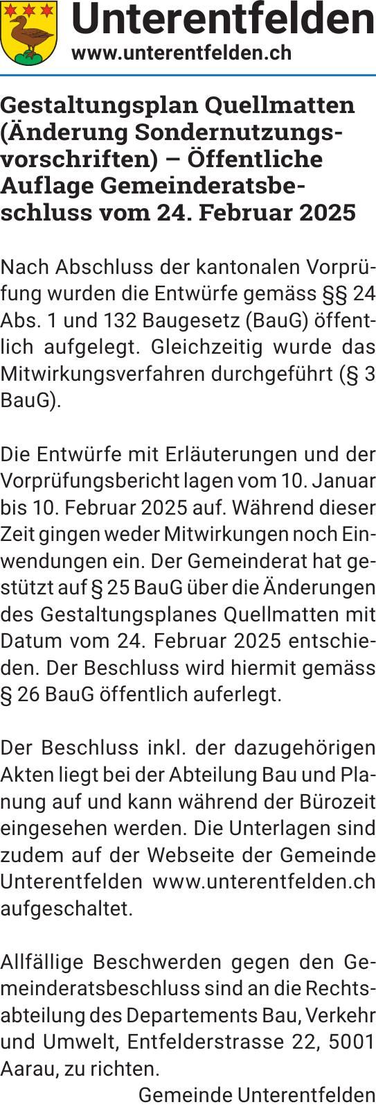 Gestaltungsplan Quellmatten (Änderung Sondernutzungsvorschrifte