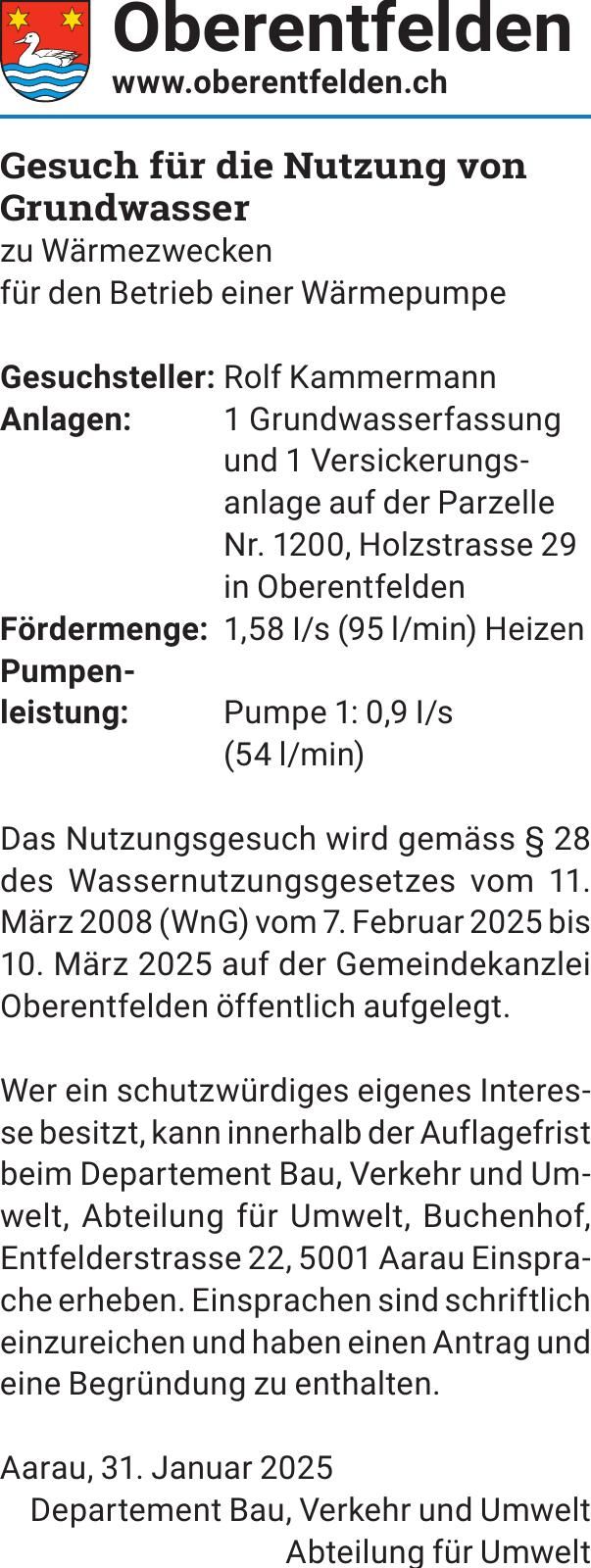 Gesuch für die Nutzung von Grundwasser