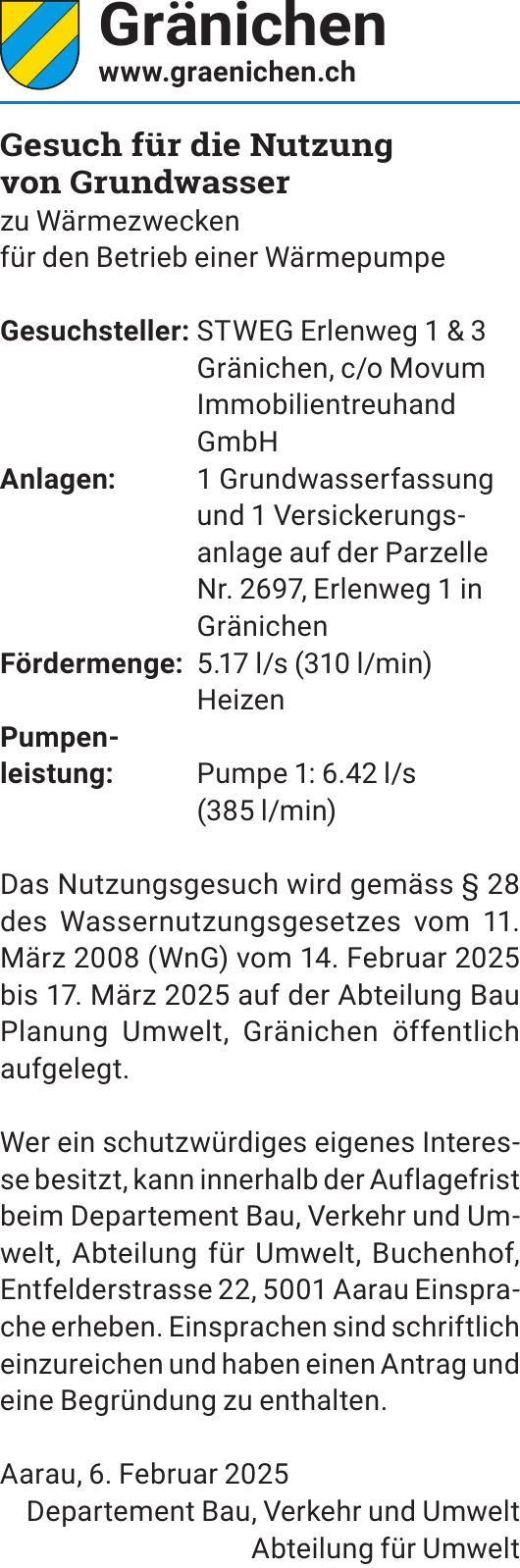 Gesuch für die Nutzung von Grundwasser