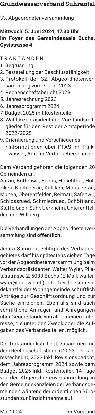 Sie sind hier: Home > Amtliche Mitteilungen > Grundwasserverband Suhrenthal