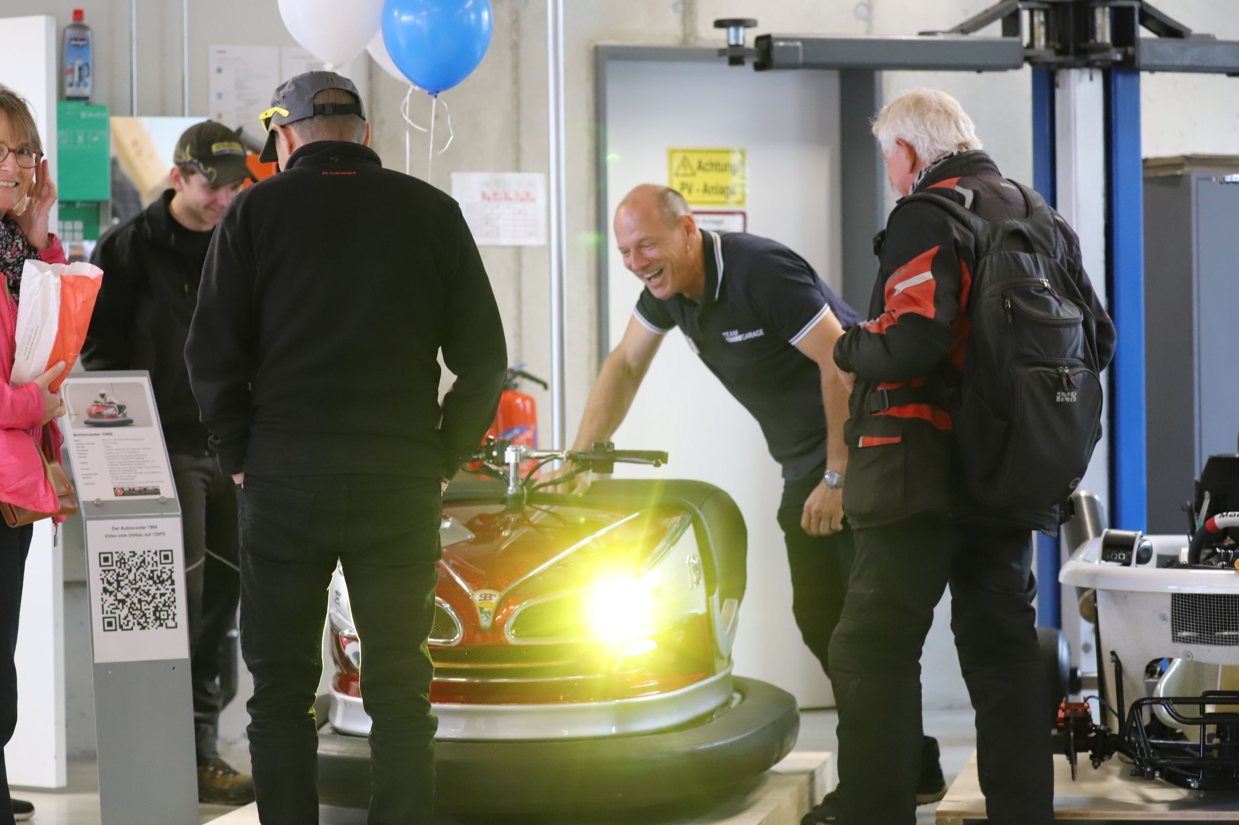 Hannes Roth ist bekannt dafür, dass sein Werkzeug in der Garage keine Chance hat, Staub anzusetzen. Der umtriebige Inhaber der Suhre Garage präsentierte an der Herbstausstellung denn auch mit Stolz Lieblinge wie die schnellste Badewanne der Welt und sein 10. Projekt, ein umgebauter Autoscooter aus dem Jahre 1960. Wie immer brauchte es einen Parkdienst, um die vielen Gäste in die Garage zu lotsen – verwöhnt wurden diese nicht nur mit Köstlichkeiten vom Grill und mit feinen Berlinern vom Beck-Mathys aus Schöftland, sondern mit einem spannenden Einblick in die Welt verschiedenster Technologien. So präsentierte die Schlossrueder Goldenberger Elektro AG, wie eine Ladestation fürs E-Auto funktioniert und wie diese mit der eigenen Photovoltaikanlage für sauberen Strom versorgt werden kann.