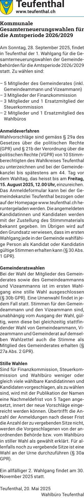 Kommunale Gesamterneuerungswahlen für die Amtsperiode 2026 202