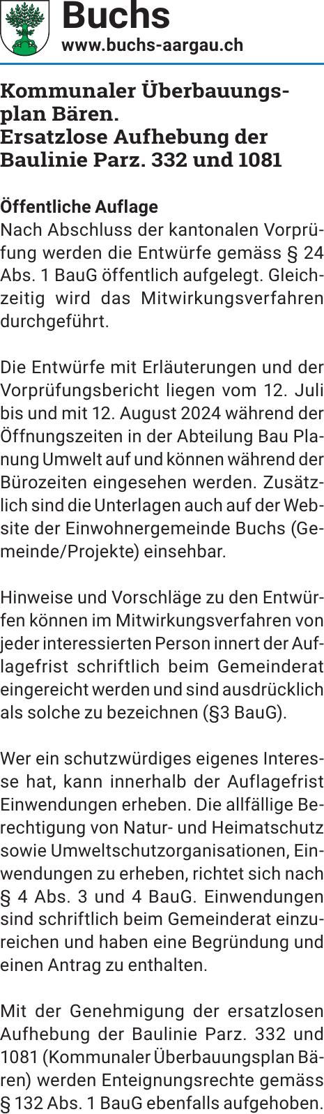 Sie sind hier: Home > Amtliche Mitteilungen > Kommunaler Überbauungsplan Bären. Ersatzlose Aufhebung der Baul