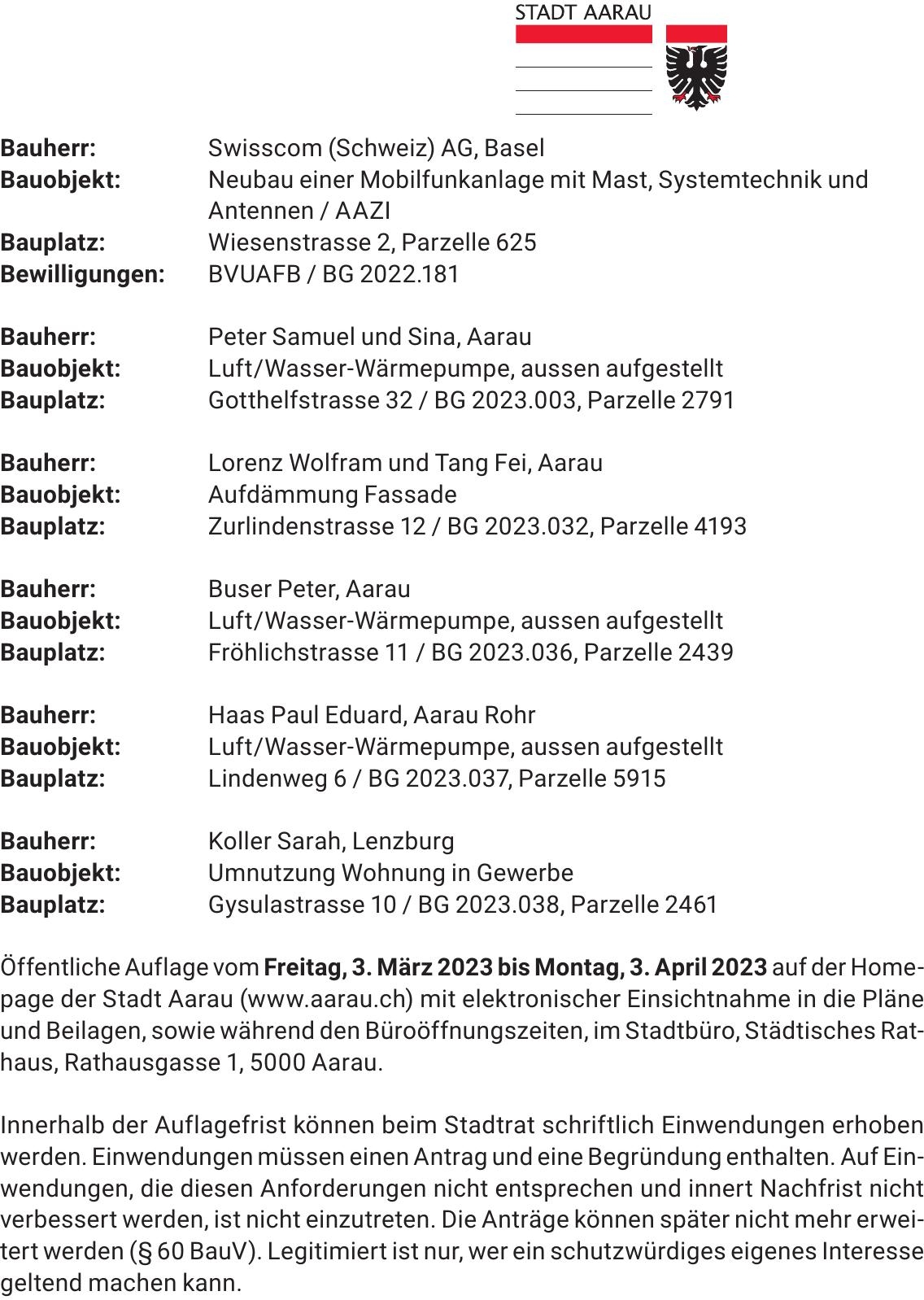 Sie sind hier: Home > Baugesuche > KW09_2023 – Aarau