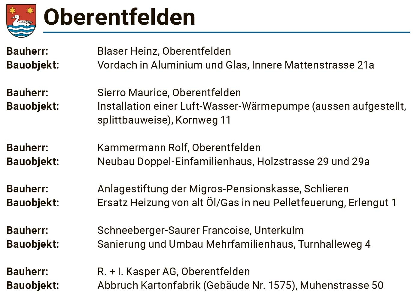 Sie sind hier: Home > Baubewilligungen > KW14_2023 – Oberentfelden