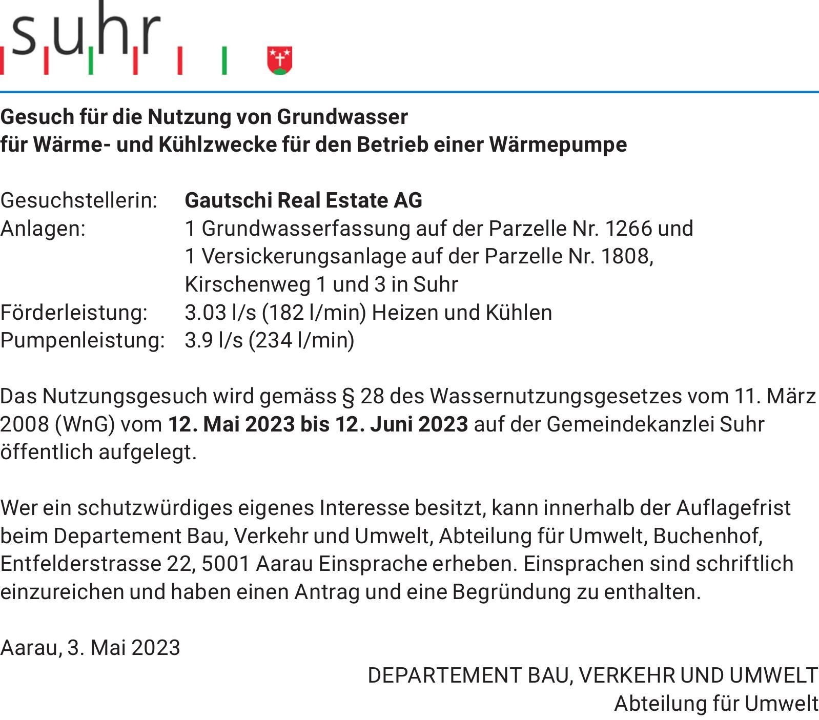 Sie sind hier: Home > Baugesuche > KW19_2023 – Suhr Gautschi
