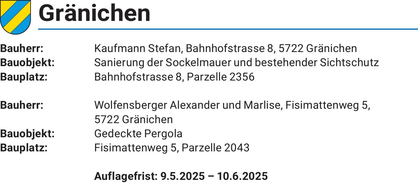 Sie sind hier: Home > Baugesuche > KW19_2025_Gränichen