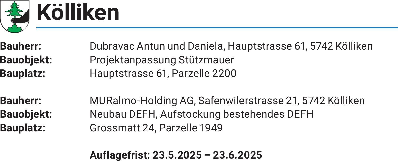 Sie sind hier: Home > Baugesuche > KW21_2025_Kölliken