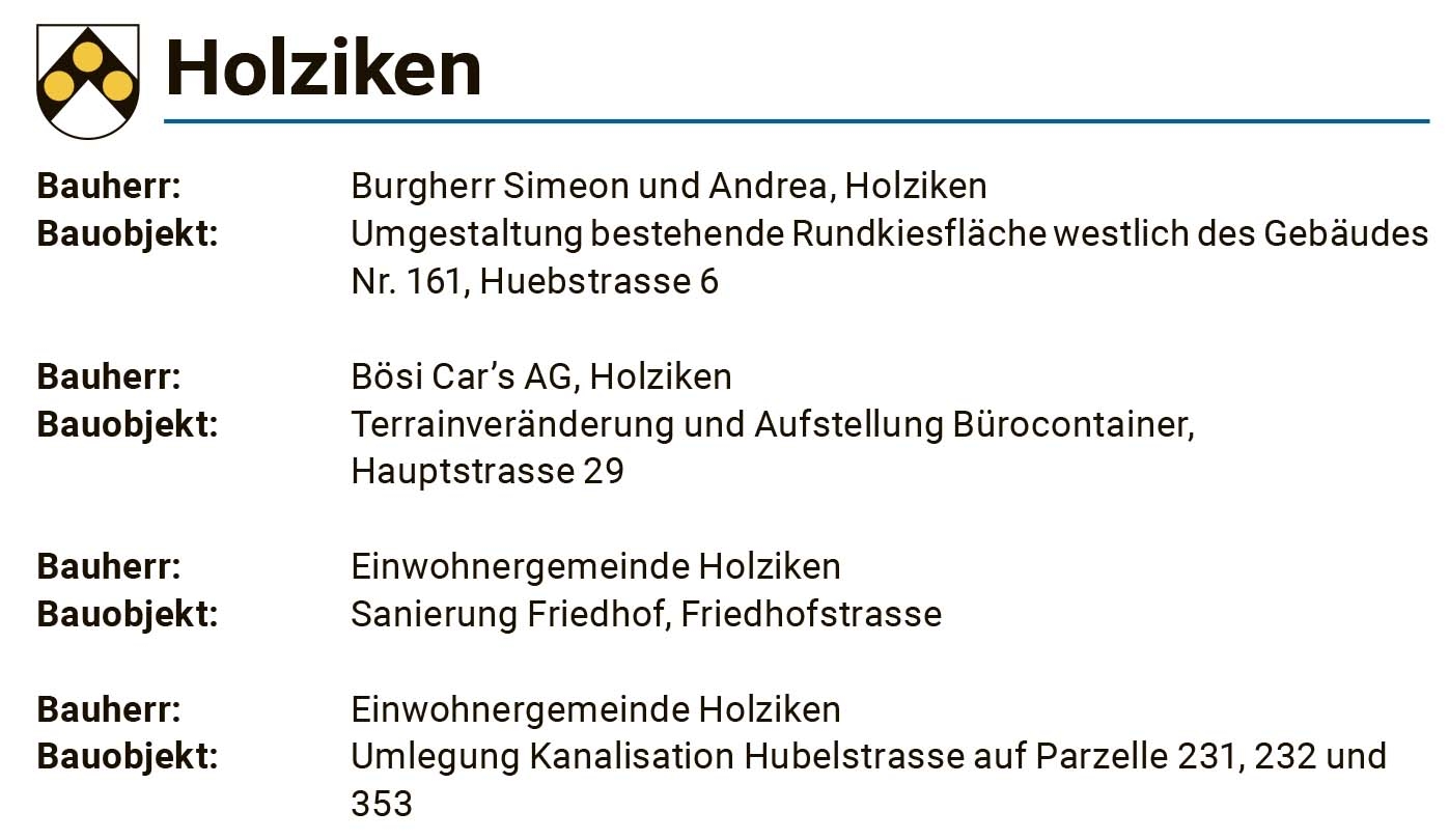 Sie sind hier: Home > Baubewilligungen > KW23_2023 – Holziken