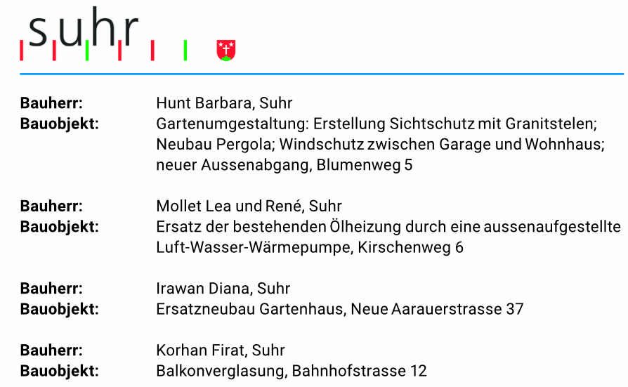 Sie sind hier: Home > Baubewilligungen > KW23_2024_Suhr