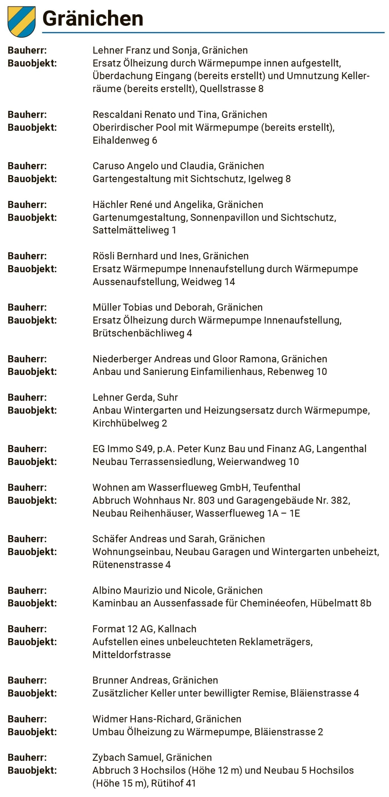 Sie sind hier: Home > Baubewilligungen > KW24_2023 – Gränichen